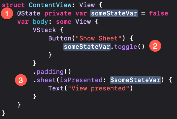 @State private var /*@START_MENU_TOKEN@*//*@PLACEHOLDER=someStateVar@*/observedVar/*@END_MENU_TOKEN@*/ = false